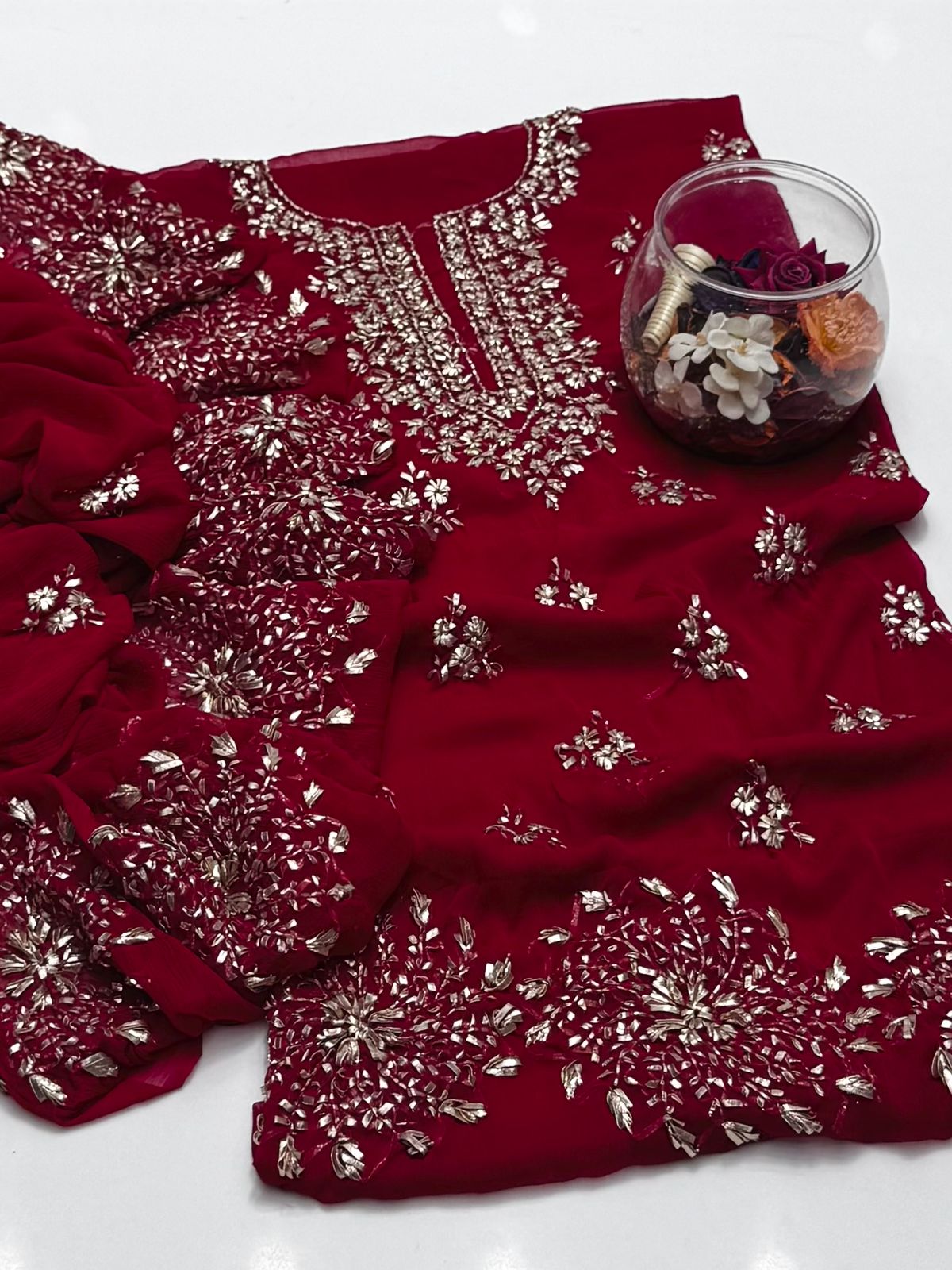 2 Handmade Marori Gota Work On Soft Chiffon Shirt with double sided pallu Work Dupatta.
