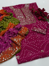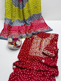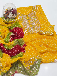 New Arrival of Handmade Press Gota Pasting Work with Chunri tie and dye Dupatta