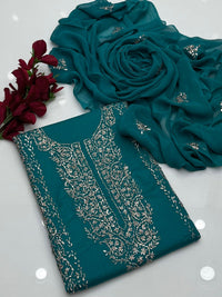 This beautiful Base GTM Lawn suit is perfect for a classy and comfortable look. It is made from soft lawn fabric and decorated with handmade gotta work, giving it a rich and elegant style.